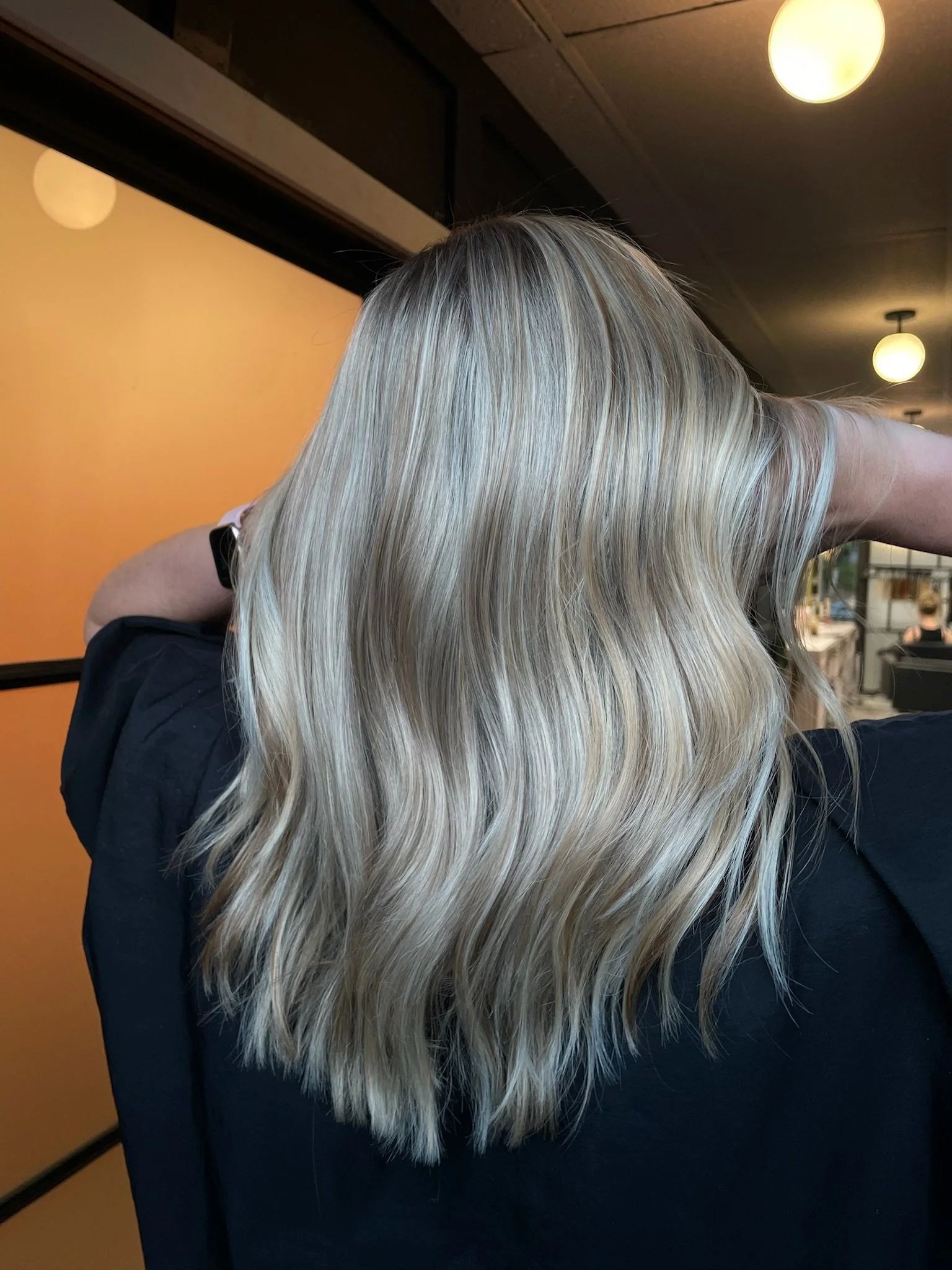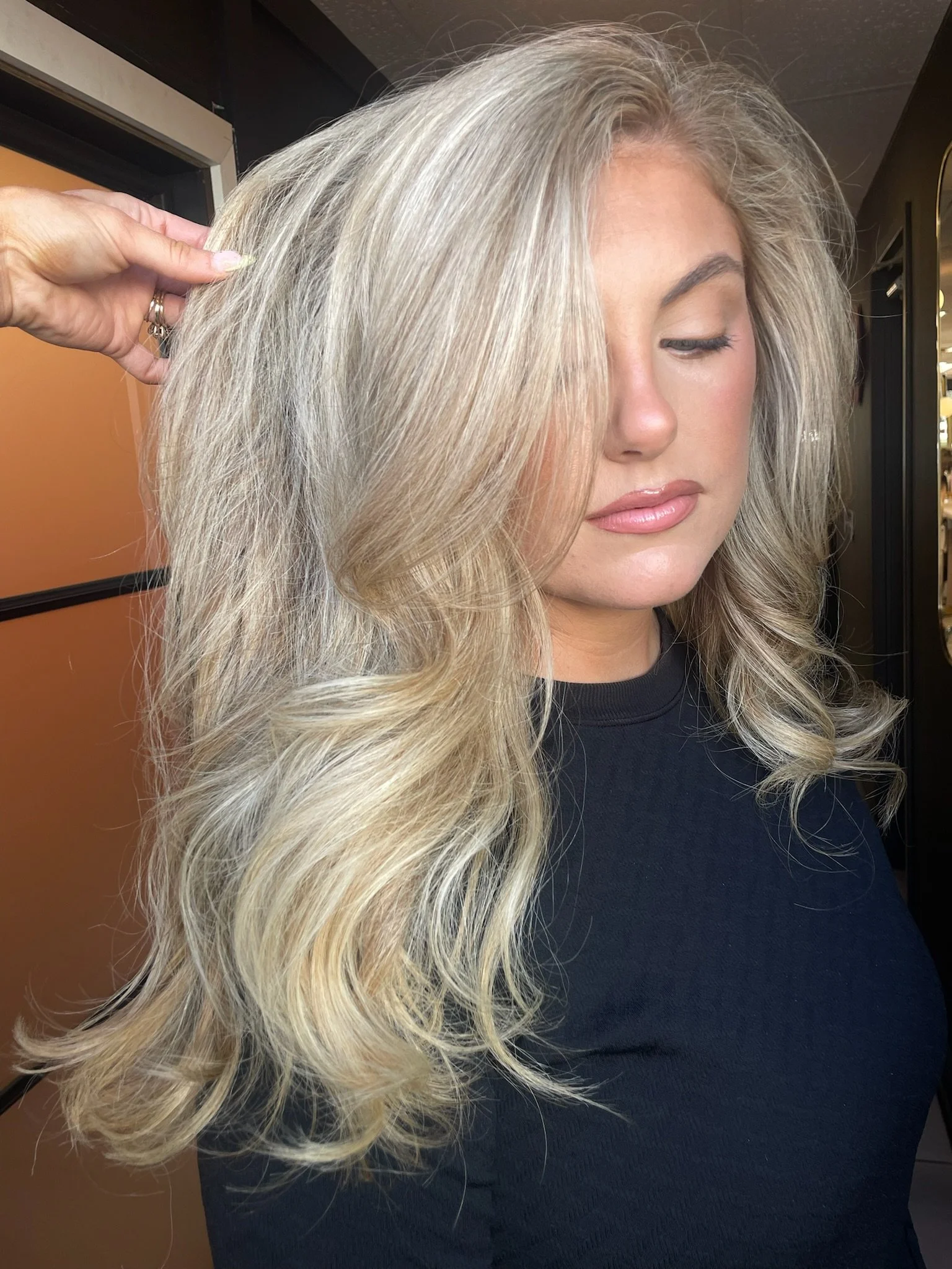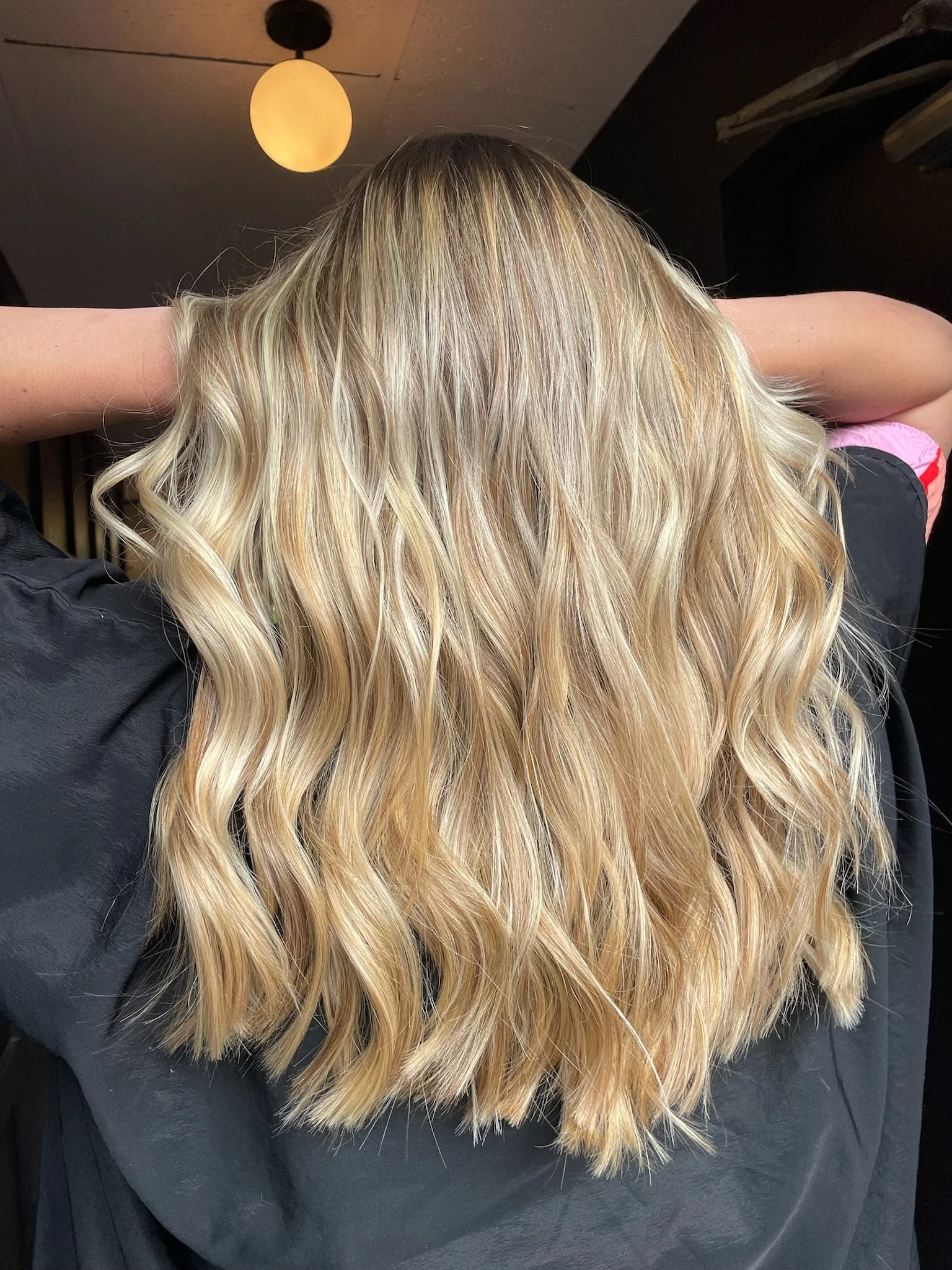 Expertly placed highlights that add depth, light, and subtle contrast to your hair, creating a luminous, multi-dimensional effect. This personalized service enhances your natural color with a soft, sun-kissed glow for timeless elegance. -